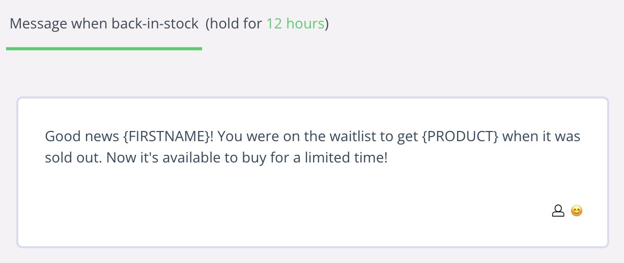 The first customer(s) that got the back-in-stock message has a certain time to make the purchase. This time is determined by your back-in-stock hold time which you can customize in your Waitlist tab: